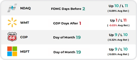A daily cheat sheet of historically favorable trades – including entry and exits. Find what is in play before it moves.